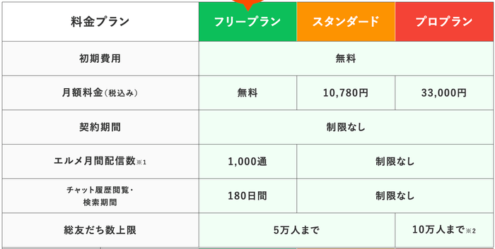 フリープランで使える機能に加えて、一部の利用制限が緩和されます。
