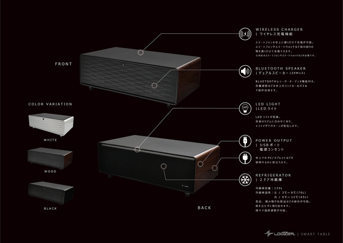 「テーブル×冷蔵庫×スピーカー×ワイヤレス充電」  これらが1つになった革新的な製品  LOOZER「SMART TABLE」を発表。 | NEWSCAST
