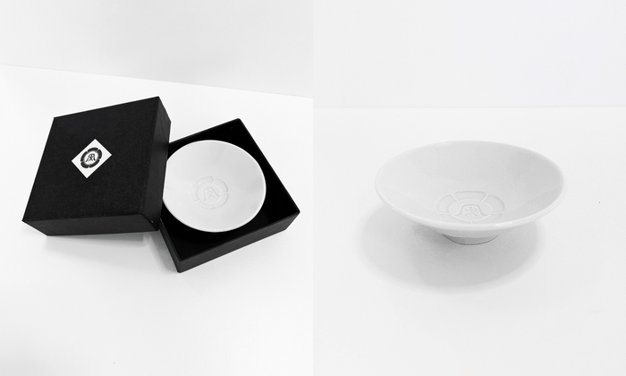 盃は神事などで用いられる「かわらけ」の形を採用。内側に風の紋を彫り込み、リサイクル粘土で製作しました。