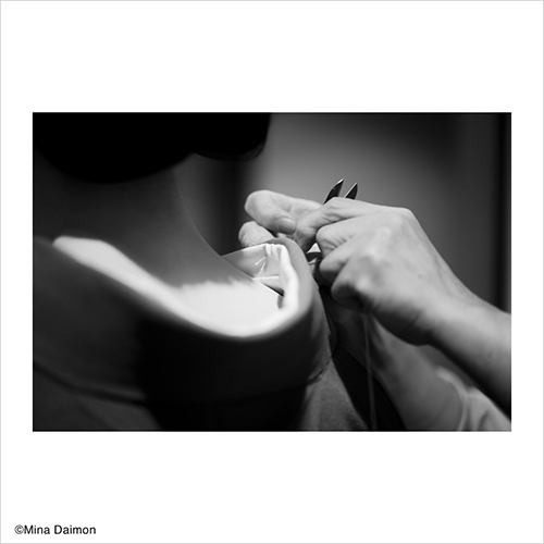 本作品は、DNPメディア・アートがDNPプラザで展開している「表現工房」とライカGINZA SIXで今夏開催し、現在もライカ大丸心斎橋店で開催中の、大門美奈写真展「新ばし」で展示した作品です。大門さんがライカで撮りおろした「新橋芸者」の写真を、DNPメディア・アートの新技術「高品質モノクロプリント」でプリントしました。