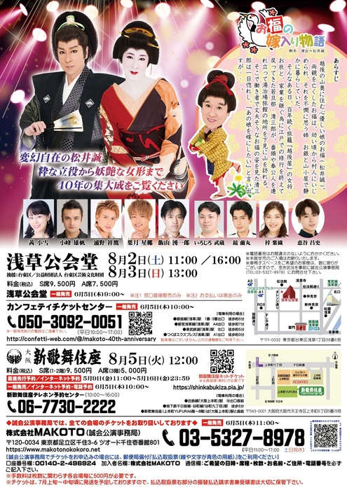 株式会社MAKOTO主催、『芸道40周年記念 松井誠特別公演』が2025年8月2日 (土) 〜 2025年8月3日 (日)に浅草公会堂(東京都 台東区 浅草 1-38-6)にて開催されます。