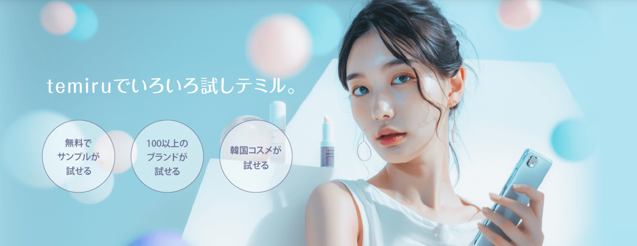 “気になる化粧品を探しテミル?試しテミル?”というコンセプトから生まれたtemiruは、「化粧品選びで失敗したくない」という女性の願いを叶える画期的なサービス。