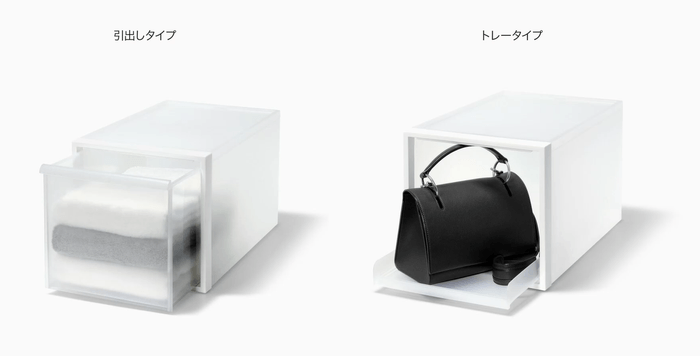 収納物によって引出しタイプとトレータイプからお選びいただけます。