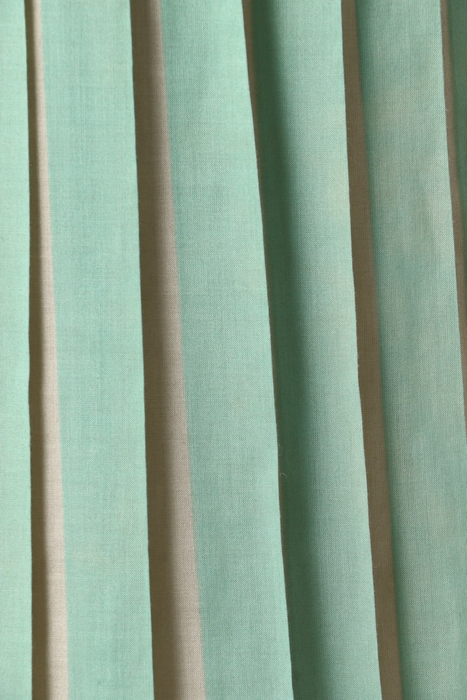 ・プリーツを折ったまま、表ひだにのみ色付けができる転写プリントテクニックを用いているので、プリーツが開くとストライプ調になります。