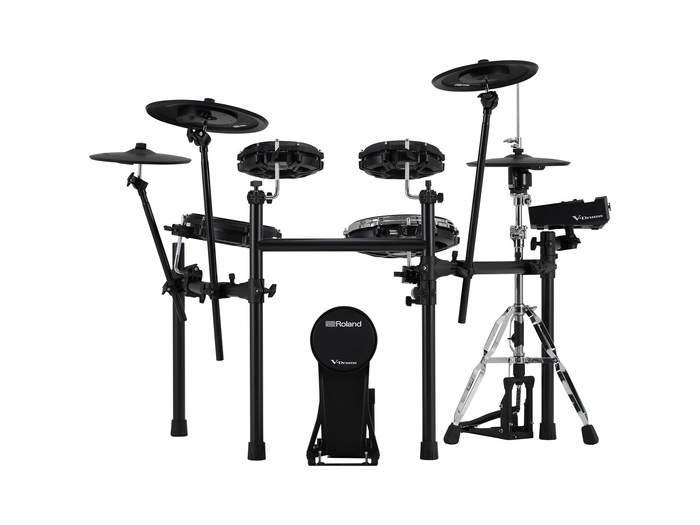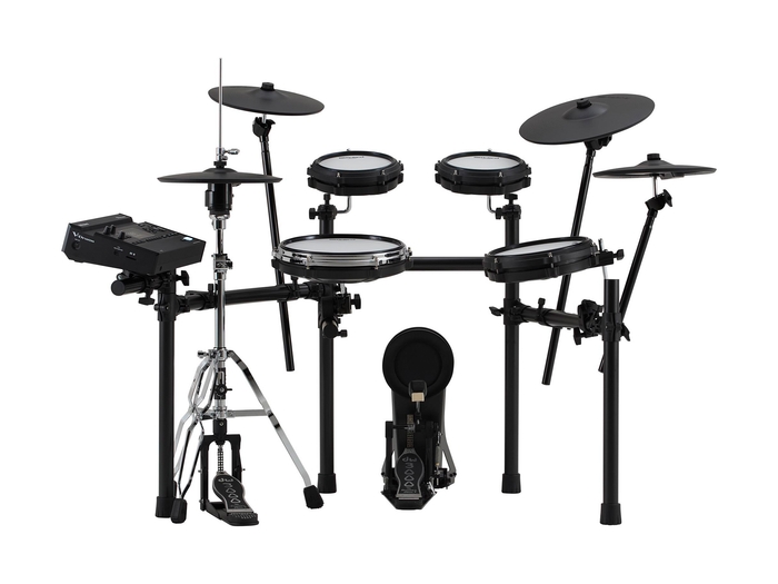 コンパクトなサイズながらプロの演奏にも対応する仕様で、没入感のある演奏体験を味わえるドラム・キットです。「V71」と同等のサウンドを持つ『V31』を音源に、3つのセンサーでの打点位置検出によりレスポンスやリムとヘッドの叩き分け、ブラシ奏法など表現が向上したパッド「PD-12P」をスネアに、自然なダイナミクスとホットスポット低減を両立した新開発のパッド「PD-10H」「PD-8H」をタムに採用。自然な開閉感のハイハット「VH-10」、アコースティックの演奏感と耐久性、低騒音設計を両立させたキック・パッド「KD-10」などで構成し、ハイレベルの演奏表現とキット構成の柔軟性を備えたコンパクトなキットです。