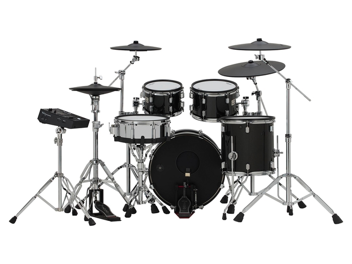 浅胴タイプの木製タム・パッドやフルサイズのキック・ドラムを採用し、アコースティック・ドラムのような存在感や演奏感を実現しつつ、V-Drumsならではの表現力を味わえるキットです。『V31』を音源に、張り具合の調整が可能なメッシュ・ヘッドを持ちクロス・スティック奏法にも対応する12インチのスネア・パッド「PDA120LS-BK」、ビーターのセッティングがより容易になった18インチのキック・ドラム「KD-18-BK」、デュアル・トリガーによる高度なセンシングが特徴の浅胴型シェルのタム・パッド「PDAシリーズ」、3ウェイ・トリガーのクラッシュ・シンバル「CY-14R-T」やライド・シンバル「CY-16R-T」などで構成。自宅での練習だけでなく、ステージ演奏やスタジオ・レコーディングでも優れたパフォーマンスを発揮するドラム・キットです。