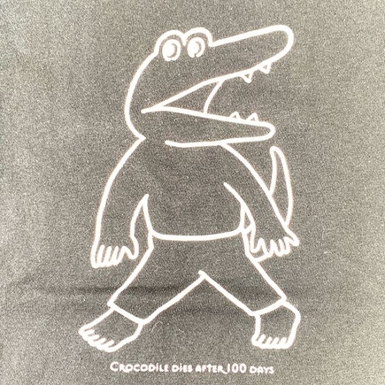 こんにちは♫こちらのコーナーでは、最新登場のアイテムをなるべく速く、お届けしています。今回は100日後に死ぬワニのTシャツ。