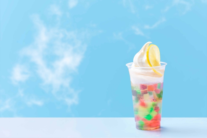 軽井沢アンブレラスカイをイメージした、テイクアウトドリンクを星野エリア内にある複数店舗で販売します。食のセレクトショップ「ココペリ」では、傘やアジサイの花をかたどったクッキーとメレンゲをトッピングしたクリームソーダを販売します。また、ハルニレテラスから徒歩5分の「カフェ ハングリースポット」では、数量限定で「虹色レモネード」を販売。カラフルなゼリーが入ったレモネードの上に、雲をイメージしたソフトクリームを添えた見た目も爽やかなドリンクです。