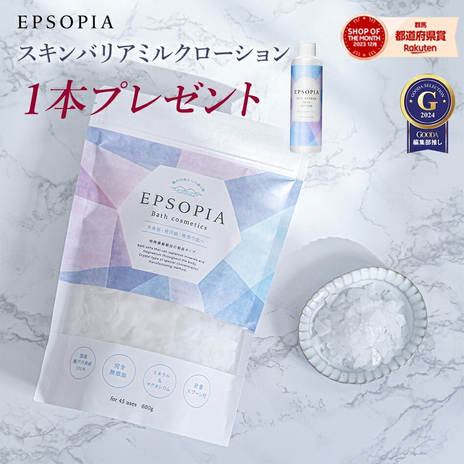 商品名:\ プレゼント中/ バスソルト 45回分 600g 入浴剤 追い焚きできる 1個 2個 3個 5個 セット マグネシウム 塩化マグネシウム 塩 天然 塩 風呂 発汗 浄化 無添加 肌 子供 セット ギフト プレゼント 送料無料 EPSOPIA エプソピア