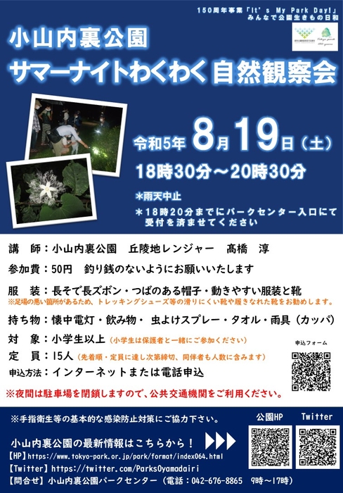 【8/19(土)開催】小山内裏公園「サマーナイト わくわく自然観察会」