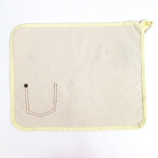 こちらも、アイボリーの綿素材。右下にはポケットもついているので、カトラリーを差し込んだり、チョコやキャンディなどをそっと入れておいたりできちゃいます♪