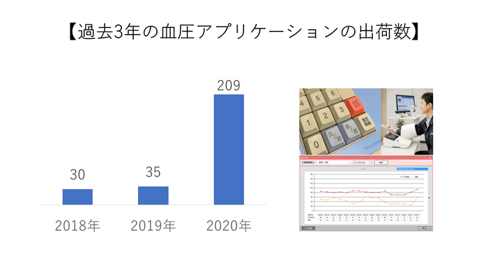アルコールチェックと同様に、血圧計の記録も残すことが普通となっていることが、アプリケーションの出荷数からよくわかります。