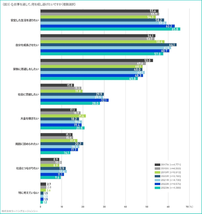 仕事で成し遂げたいことは「安定した生活を送ること」