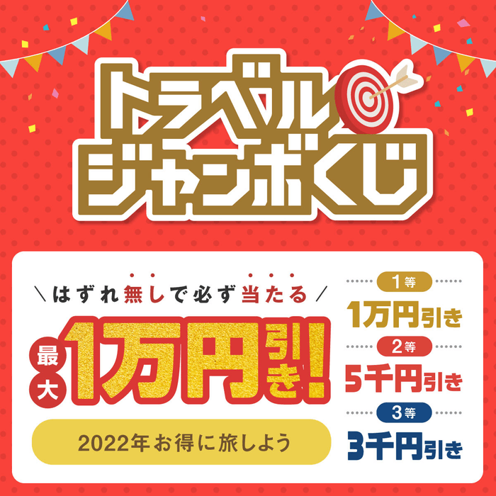 また、先着4万名様限定で、ハズレ無しで10,000円・5,000円・3,000円引きのいずれかの割引クーポンが当たる「トラベルジャンボくじ」を今年も開催します。「トラベルジャンボくじ」はどなたでも気軽にチャレンジできます。