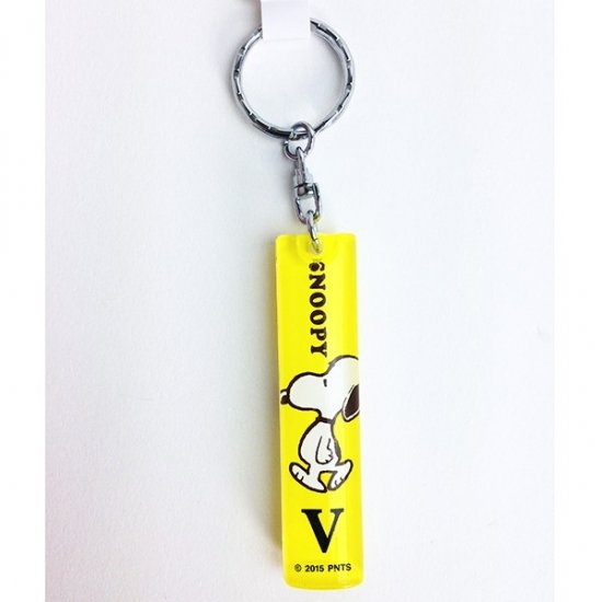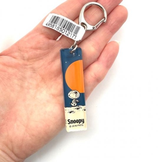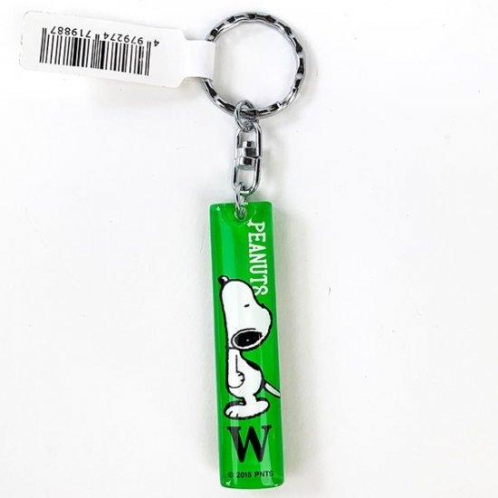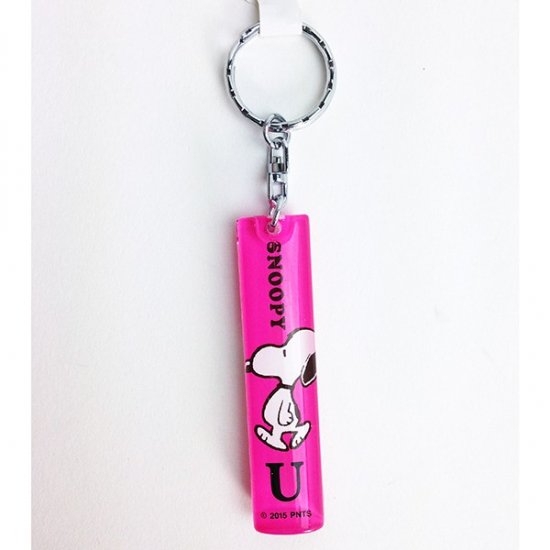同じ形のスティック型キーホルダーには、イニシャルデザインのほかにもウッドストックたちに埋もれるスヌーピーや、アストロノーツテーマのデザインもございます。