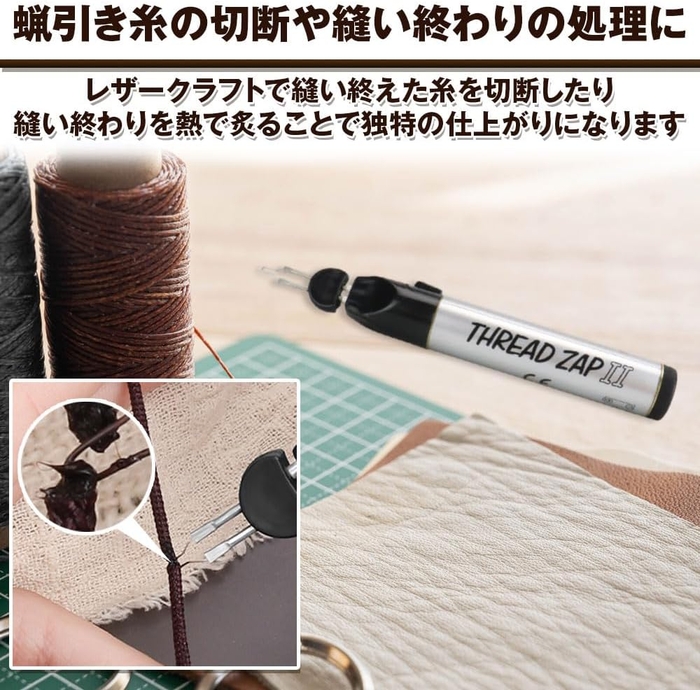 縫い終わりをライターで炙っている方も多いはず…。確かに糸の先端は丸くなりますが、ヘリを焦がしてしまったりライター自体扱うのが怖いといった意見もあります。カービングヒートペンはボタン1つで、糸を綺麗にカット&ほつれ防止の処理もできる画期的なアイテムです。直火を使わないため怪我のリスクも少ないです。