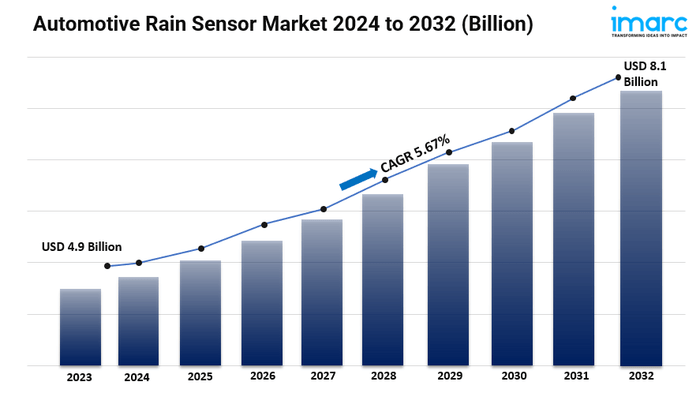 • 自動車用レインセンサー市場予測 2032年: IMARCグループは、2032年までに市場規模が81億米ドルに達すると予測しています。