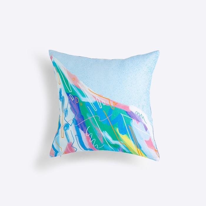汎用性の高い45×45cmのクッションカバー。素材は手触りの良いオックスコットンを使用。リビングやベッドでくつろぐ時間に、心地よさを運んでくれます。国内で一貫生産されたこだわりのあるコットンが、アーティスト作品の魅力を引き立てます。