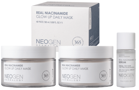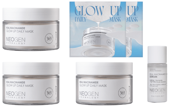 また、NEOGENベストセラー「ナイアシンアミドデイリーマスク」のデュオ、トリオセットをご購入時には、ナイアシンアミド15%セラム(10ml)とナイアシンアミドデイリーマスク(2枚入)のプレゼントまでご用意いたしました。