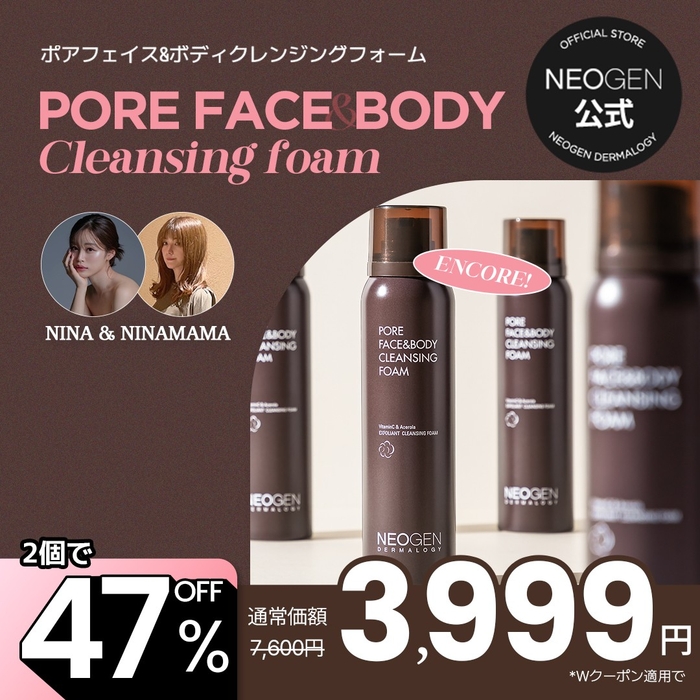 さらに、インフルエンサーのNINAさんと共同開発した人気商品「ポアフェイス&ボディクレンジングフォーム」には、単品、デュオセットをご用意しております。