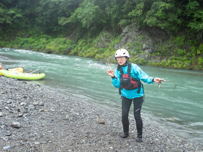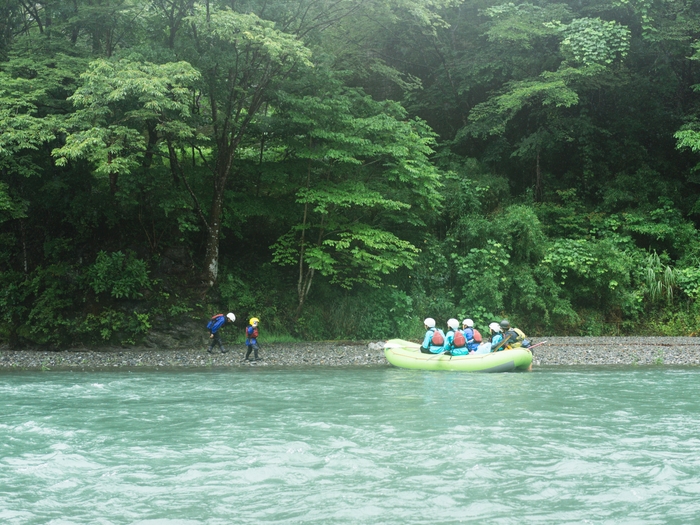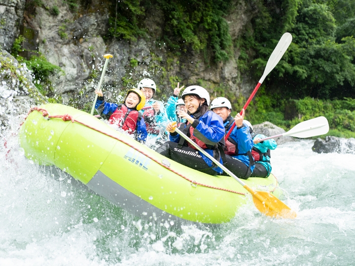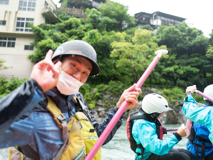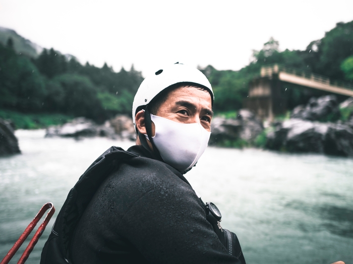 ラフティングボートを率いるのは、御岳渓谷でリバーアクティビティサービスを提供する「みたけレースラフティングクラブ」代表の柴田大吾さん。世界選手権2位の経歴を持つラフティングプランナーです。