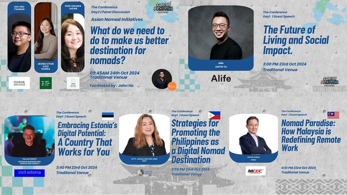 カンファレンスには、世界中から起業家や投資家、コミュニティリーダーなどの多様なバックグラウンドを持つデジタルノマドが集結。2024年4月、日本政府が日本版「デジタルノマドビザ」を発行したことも踏まえ、「デジタルノマドビザ」「コミュニティ」「企業や自治体とのコラボレーション」の3本柱で、デジタルノマド市場の未来を紐解くパネルディスカッションを展開します。特に23日には日本の大手企業から行政関係者、各国の政府関係者らが登壇し、デジタル市場のリアルを語ります。