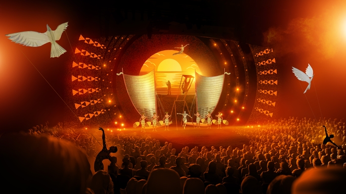 最終章では、芸術的な砂絵画家がハワイの人々の精神性と土地とのつながりをたたえ、エネルギーに満ちた生命の輪の演出で『アウアナ』が幕を閉じます。このアクロバティック・パフォーマンスは、ハワイに火をもたらしたという伝説を持つʻAlae ‘ula(アラエ・ウラ / 絶滅危惧種の水鳥)と、その神秘的な火の起源における役割を大胆に描いています。
