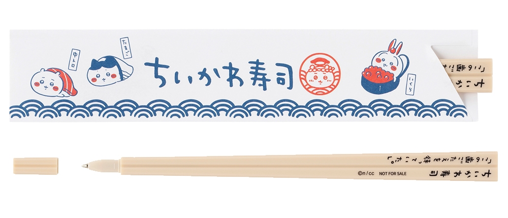 ②『むちゃうま!!ちいかわ寿司』で商品ご購入のお客様、税込4,400円以上の方には、「わりばし型ボールペン (非売品)」をお一人様1会計につき、1本プレゼント!!