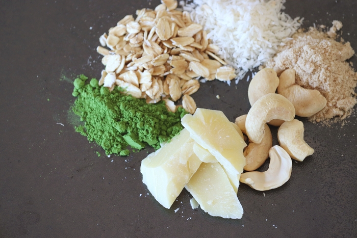 この商品で使用したホワイトチョコレートは、カカオバター以外に、オーツ麦、きび砂糖、カシューナッツやココナッツといった、様々な植物由来食材が含まれています。通常のチョコレートのような滑らかなくちどけはありませんが、さくさくっとした歯切れの良い食感と、ナッツ類の豊かな風味が楽しめる全く新しい抹茶チョコレートです。
