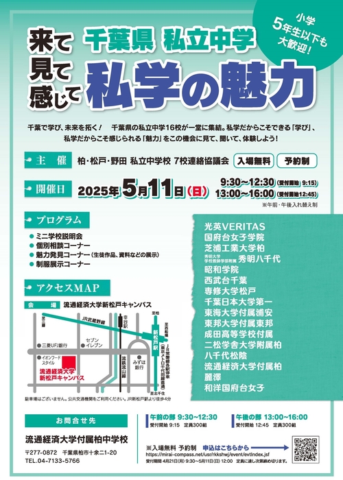 千葉県私立中学の魅力が わかる 「私学の魅力2025 」合同学校説明会開催 2025 年 5 月 11 日(日)流通経済大学 新松戸キャンパス