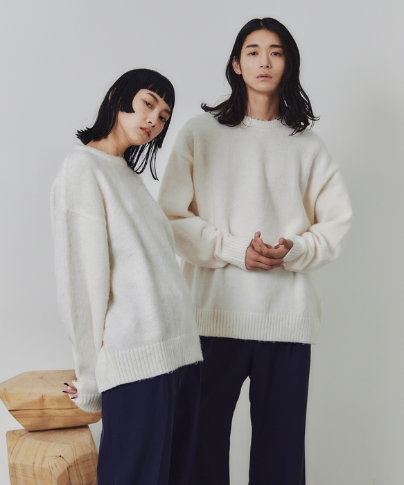 シャギーニットシリーズは、毛足の長い柔らかな生地感と今らしい緩めのシルエットに加えて圧倒的なカラーバリエーションが特徴のアイテム。