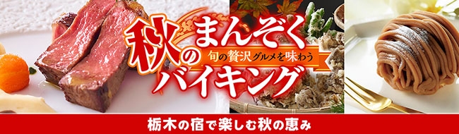 大江戸温泉物語ホテルズ&リゾーツ株式会社(本社:東京都中央区、代表取締役:森田満昌、以下 大江戸温泉物語)が運営する栃木県の3つの宿で、【秋のまんぞくバイキング】を11月30日まで開催いたします。