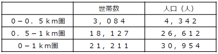 ・店舗から1㎞圏内は単身世帯比率が73.2%、2人世帯比率が15.5%と全体の9割が少人数世帯です。