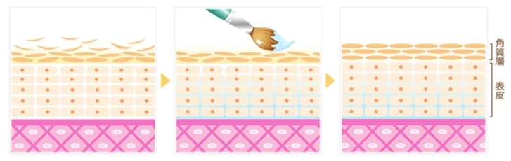 ケミカルピーリングは角質同士の結びつきを弱める働きがある薬剤を使用するピーリング治療です。薬剤が浸透して肌のターンオーバーを整え、古い角質が剥がれて皮膚の再生が促されます。