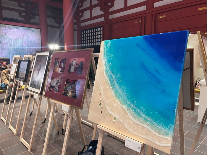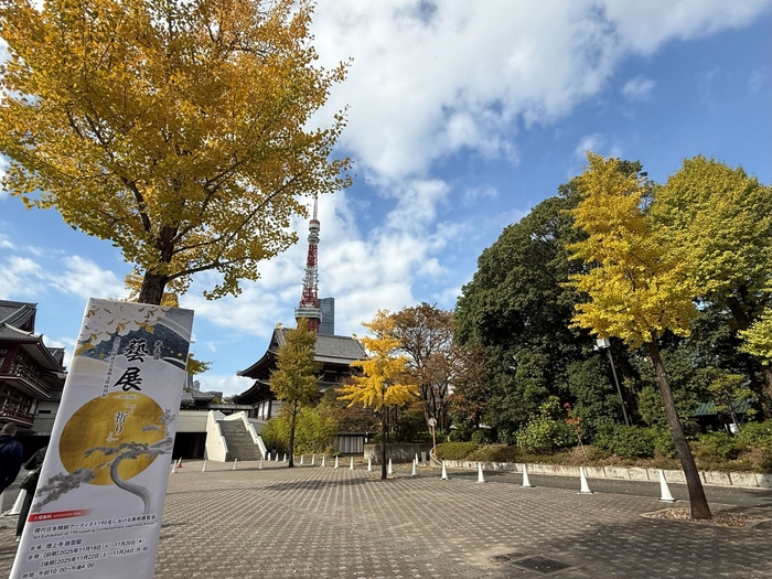 増上寺では一般の来場者も多く訪れていました。東京タワーの近くということもあり、海外からの来場者も多く、作品についてのご質問をいただきました。