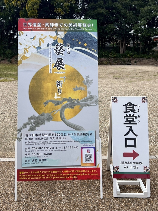 薬師寺では190名の作家の作品が期間中、食堂内に一同に展示されていました。山根氏の無釉金天目も多くの来場者にご覧いただきました。京都展示と同様に、無釉であることに驚く来場者が多くいらっしゃいました。