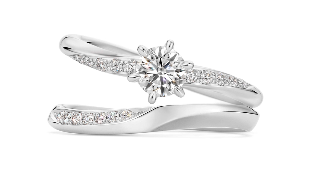 ■形状にこだわり、幅広いデザインの婚約指輪と重ね着けが可能