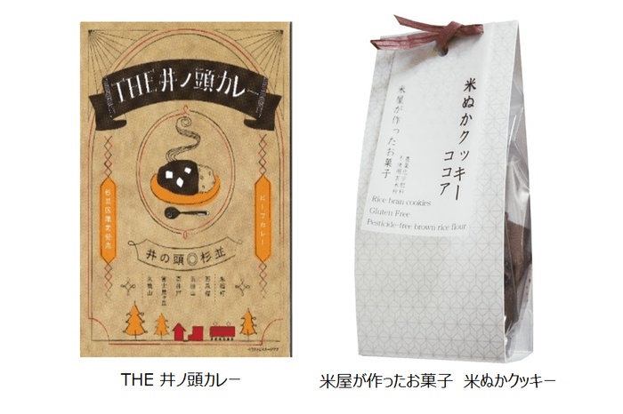 杉並のご当地カレー「THE 井ノ頭カレー」や、「米屋が作ったお菓子 米ぬかクッキー」など杉並の地元商品を販売いたします。