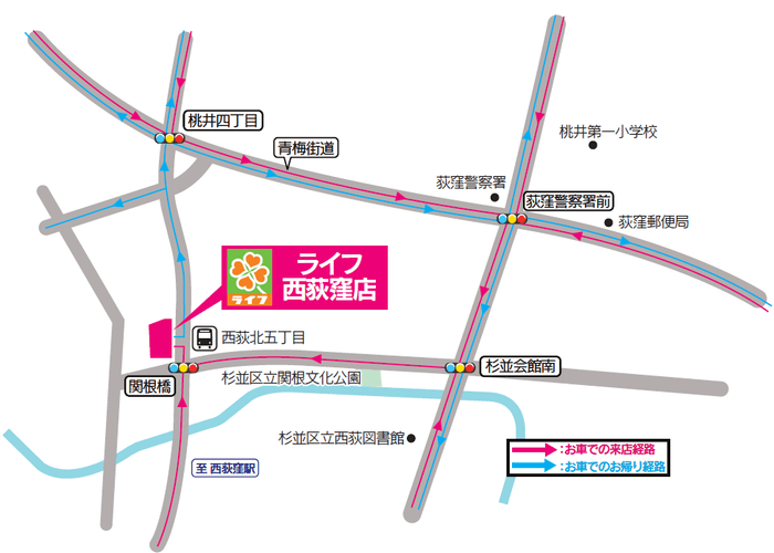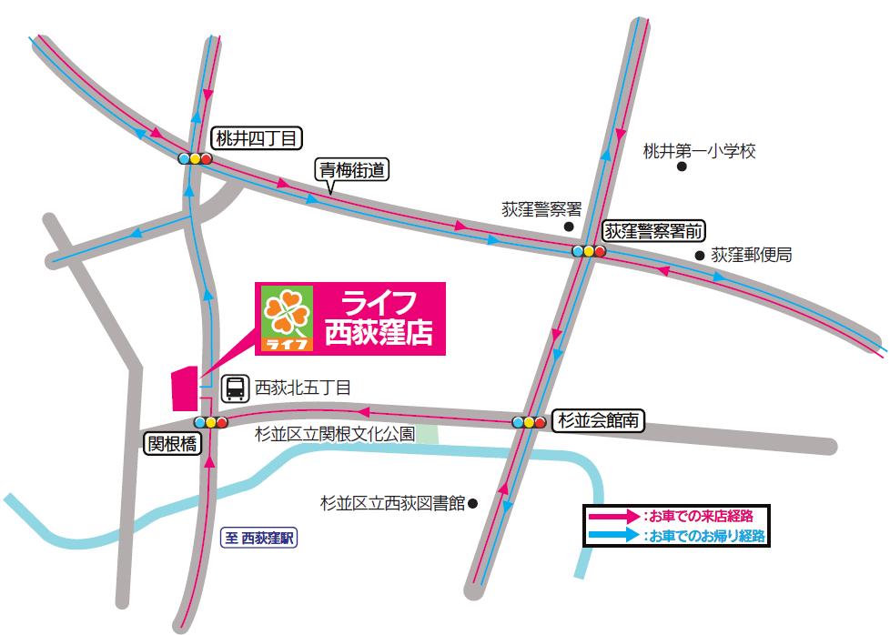 荻窪周辺は世帯数・人口ともに増加傾向にあり、JR中央線の各駅を起点とした路線バスが多数運行する地域です。地下1階に食品、地上1階に食品以外の生活用品を幅広く取りそろえ、ワンストップショッピングを実現いたします。食品フロアではライブ感のある魚・惣菜の対面売り場をはじめ、ライフ最大級の冷凍食品売り場、ニーズが高まっている健康へのこだわりが詰まった商品などを豊富に品ぞろえいたします。生活用品フロアではベビー用品・ペット用品・コスメ・衣料品などを中心に幅広くご用意することで、地域のお客様の生活に寄り添います。