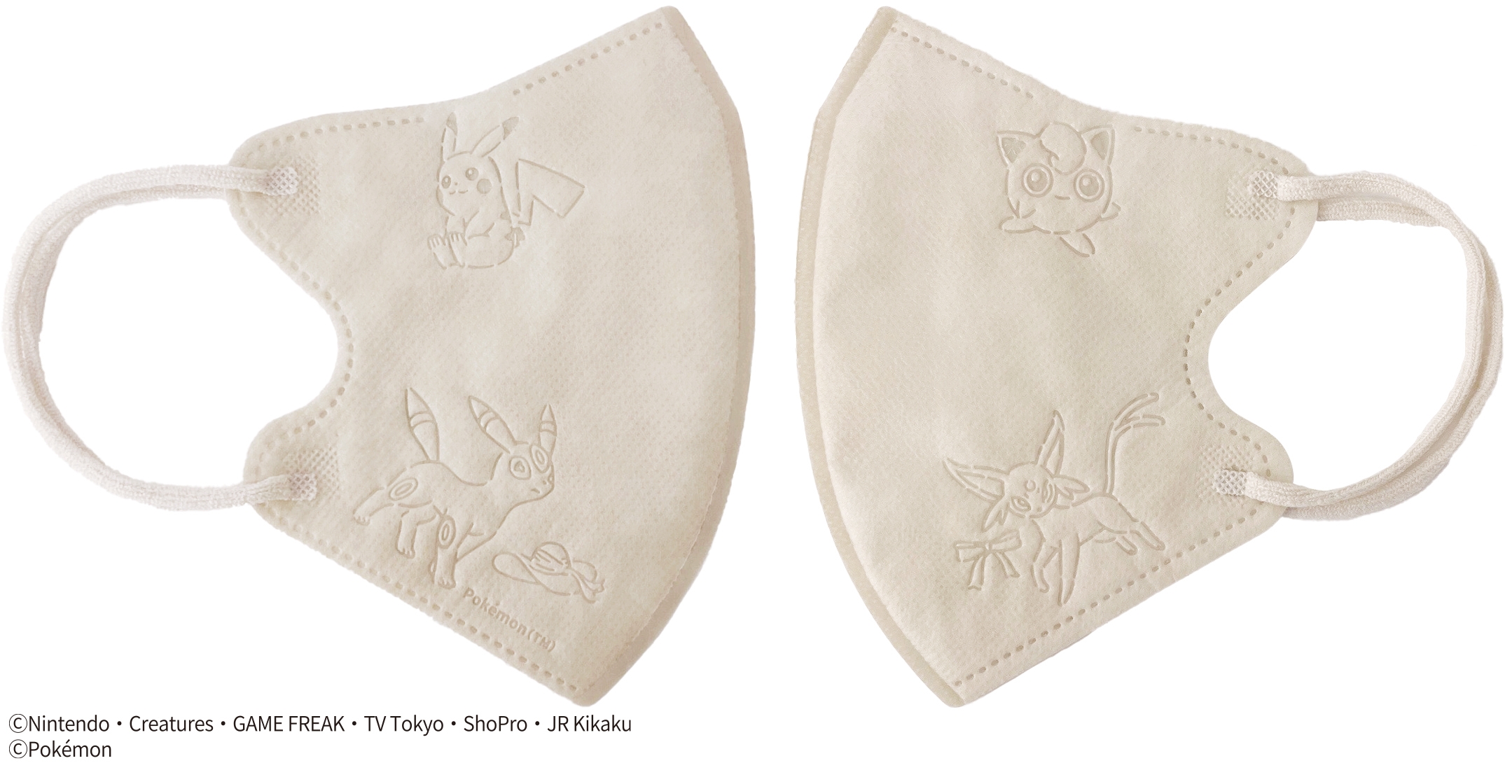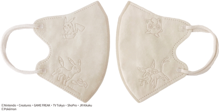 マスク本体にはポケモンたちのエンボスデザインを施しており、身に着けるだけで気分が高まる“チャームポイント”に!付属のスライダー付きポーチや個包装フィルムにもイーブイたちのプリントが施されており、日常に小さなときめきを添えるマスクセットです。