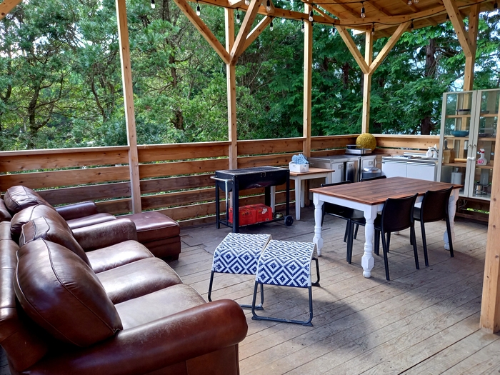 おしゃれな貸別荘スタイルや、テントの上に貸切のツリ-ハウスがある