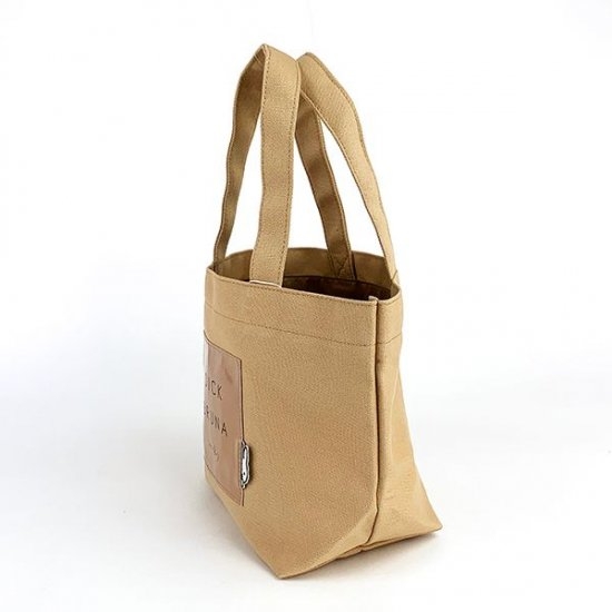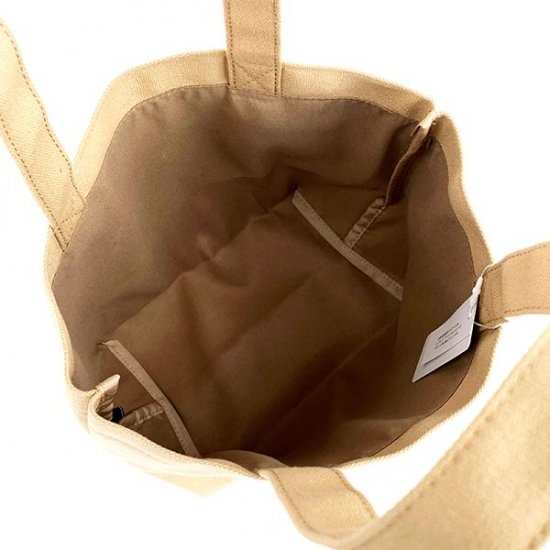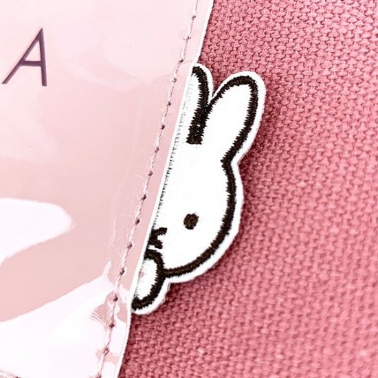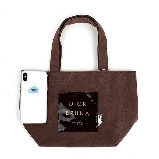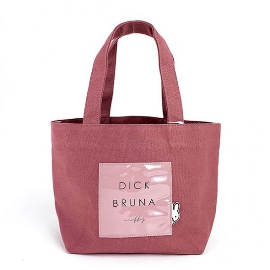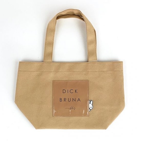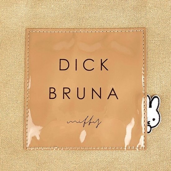 まずは、使いやすいベージュのトートバッグからご紹介していきます。丈夫なキャンバス素材の中央に、エナメル素材のタグがデザインされたシンプルなトートバッグ。タグにはブルーナのロゴとともに、ひょっこり顔を覗かせているミッフィーの姿も♪
