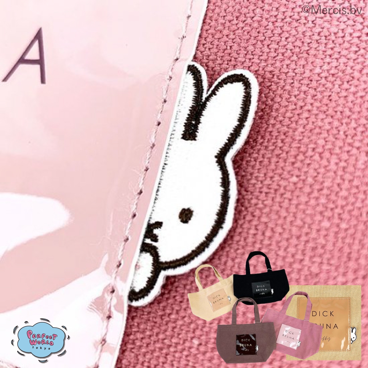 使いやすいカラーが4色揃ったミッフィーのトートバッグ。シンプルデザインで、メインバッグとしてはもちろんサブバッグとしても活用できます。