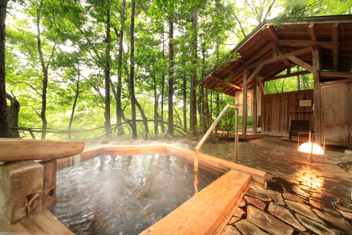豊かな自然と一体になれる、自家源泉かけ流しの湯。