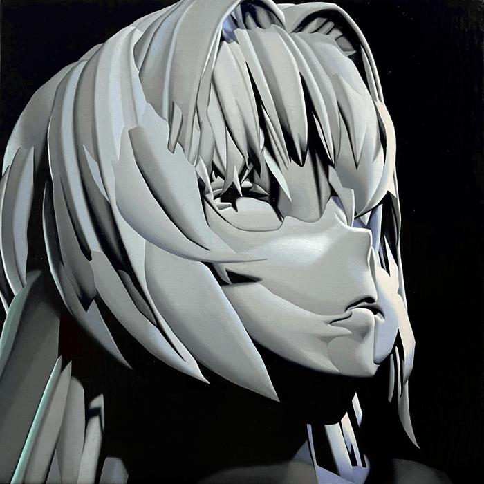 目の前にあるものを、つい私たちは“正しい形”として受け入れてしまうけれど、ほんの少し視点をずらすだけで、世界はまったく違って見える。この作品に描かれたのは、無重力空間に浮かぶ像と歪んだ視覚構造の両方を通じて、そんな視線の揺らぎと、多層的な時間、そして曖昧さの中に潜む真実は何かという問いかけをコンセプトとし描きました。