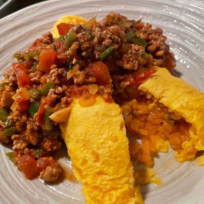 しっかり焼いた包むタイプのオムライスは同じ卵とは思えないほどのぷりぷり食感のオムライスです。材料が同じでも調理方法と時間が少し違うだけで全く違う料理にするのは、シェフの腕の見せ所。