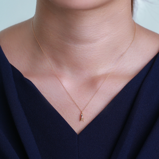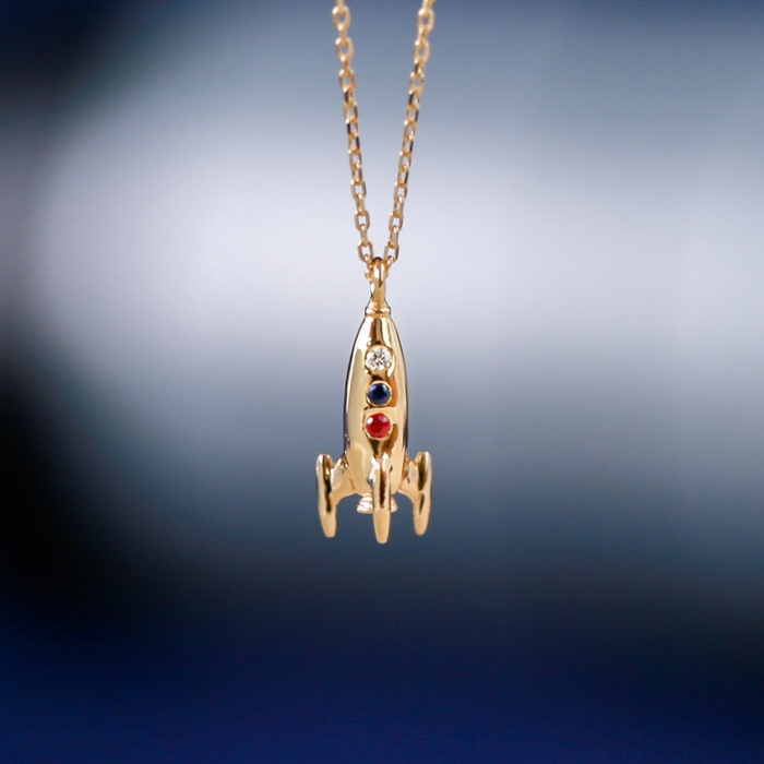 「スペース」ネックレスはリアルなロケットではなく、まるでブリキのおもちゃのようなロケットの形にすることで、どこか懐かしさと温かみを感じるデザインになりました。