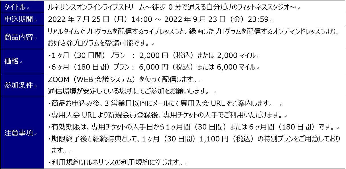 この度、ANA Xとルネサンスは、ANAマイレージクラブ会員を対象にルネサンスが提供している「オンラインライブストリーム」を特別価格で販売します。