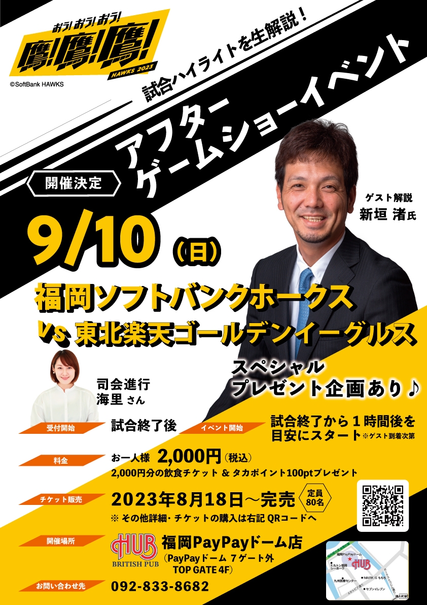 HUB福岡PayPayドーム店は、OB選手による解説イベントを開催いたします!