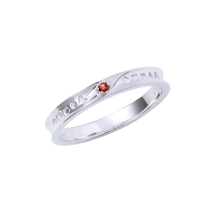 表面には炎柄をデザイン、中央にはユニットカラーストーンをセットし内側にはユニット名を刻印しました。神速一魂の世界観を取り込んだ平打ちフォルムのデザインです。